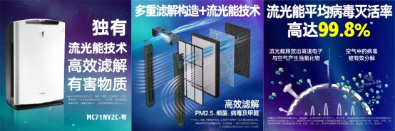 大金轉(zhuǎn)角衛(wèi)士明裝新風(fēng)凈化系統(tǒng),能起到引新風(fēng)、排廢氣、室內(nèi)凈化三效合一的效果,讓裝修好的房子也可以愛(ài)上“宅”家。